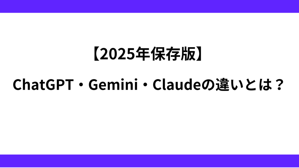 - 【2025年保存版】ChatGPT・Gemini・Claudeの違いとは?